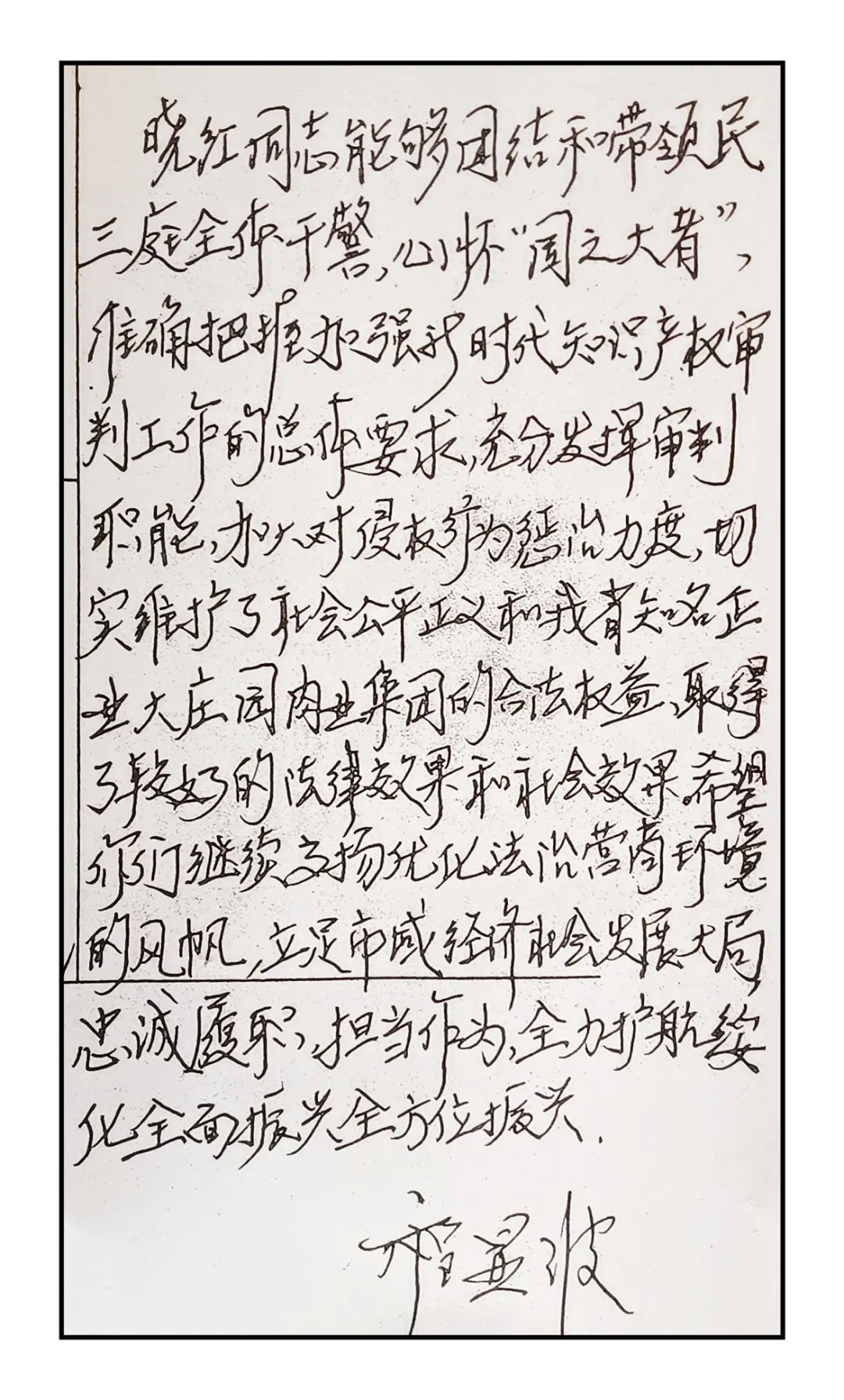 “我們懷著誠摯和激動的心情,向綏化市中級人民法院民三庭的各位法官贈送錦旗并送上《感謝信》,真誠表達我公司對綏化市中級人民法院民三庭各位法官公正廉明、認真負責的敬業精神和工作態度表示衷心的感謝和崇高的敬意!”近日,綏化市中級人民法院院長收到一封發自大莊園肉業集團股份有限公司的感謝信,信件字里行間洋溢著企業對法院的感謝之情。